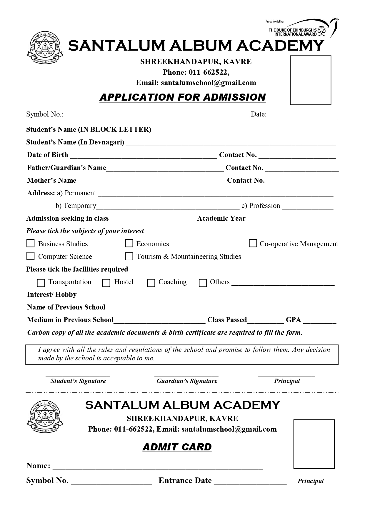 Admission Form